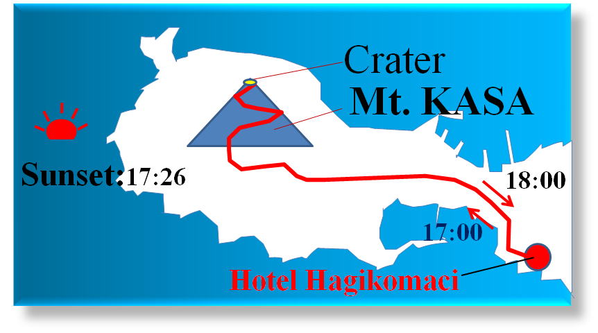 A social tour for a volcano, the Mt. Kasa, will be held from 17:00 to 17:45