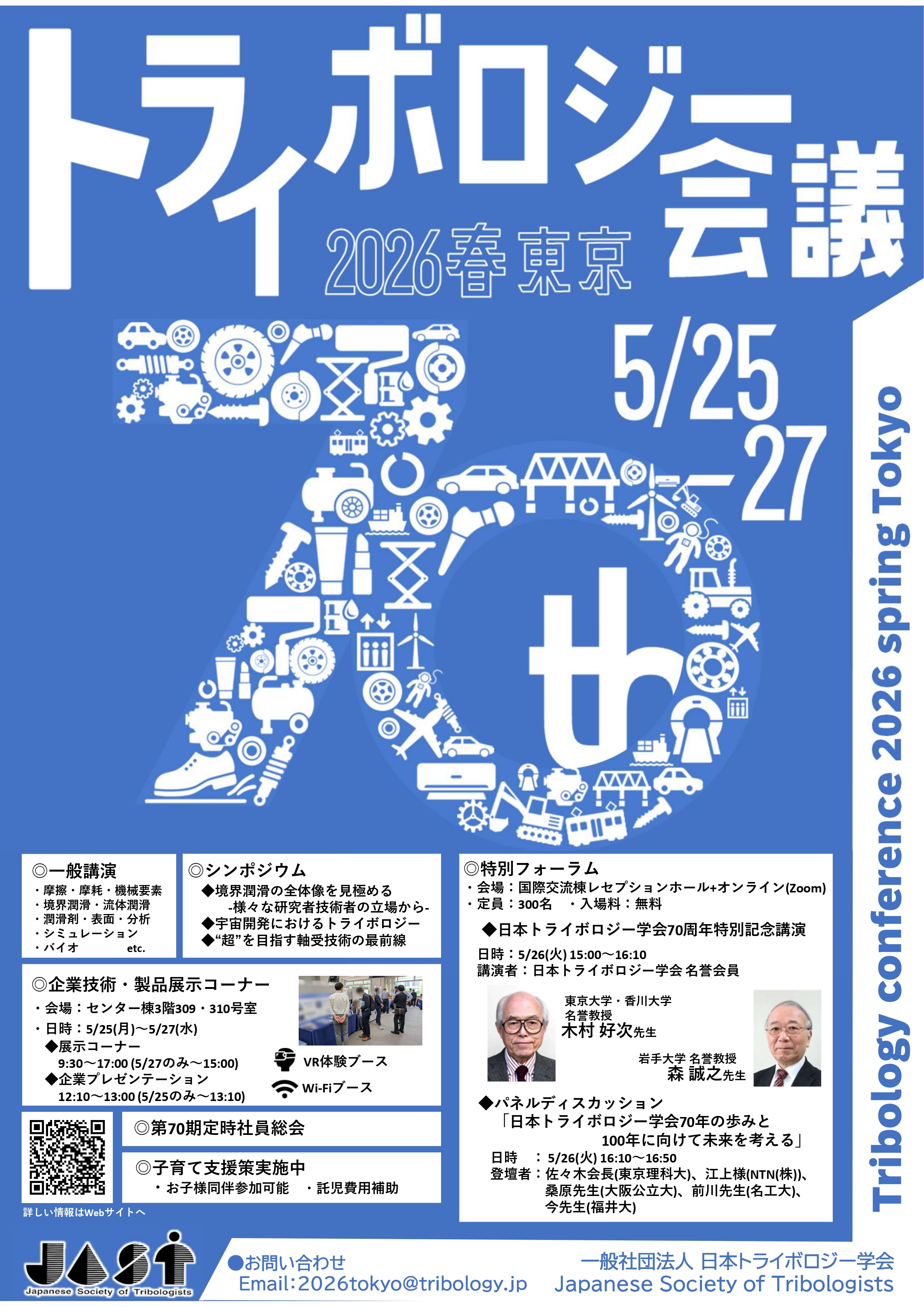 トライボロジー会議2025 春 東京 ホームページOPEN 【NEW】