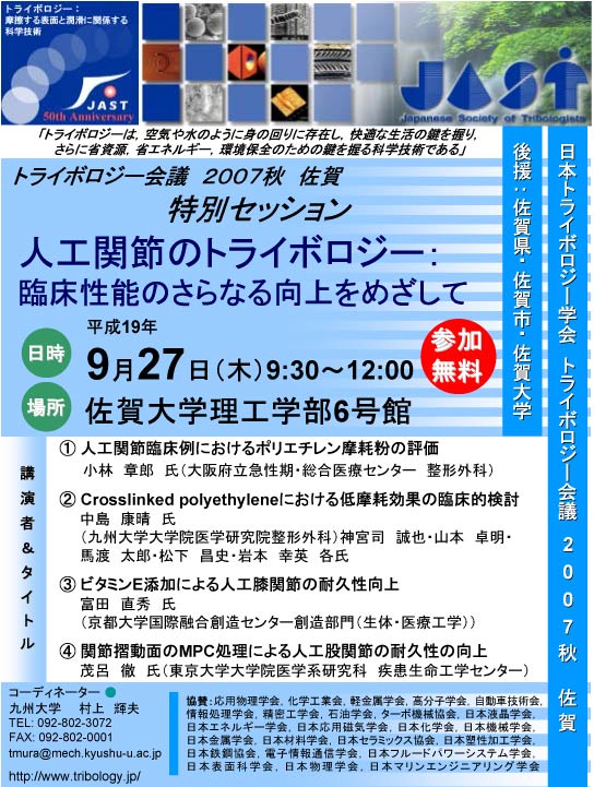 「トライボロジー会議 2007秋 佐賀」のページへもどる